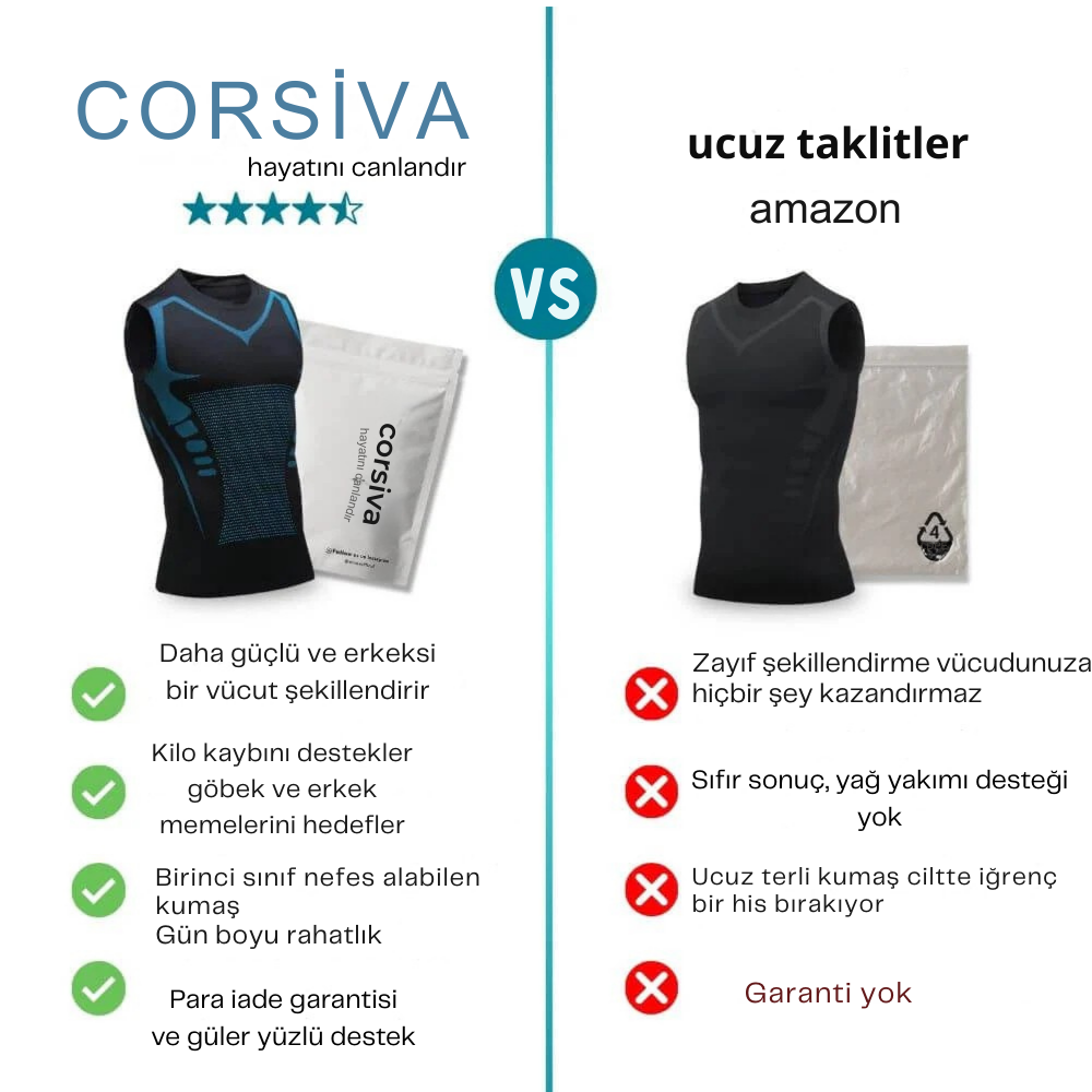 Corsiva V-Boost, aktif erkekler için tasarlanmış modern bir korse atlettir. Gün boyu fit görünüm ve maksimum konfor sunar.